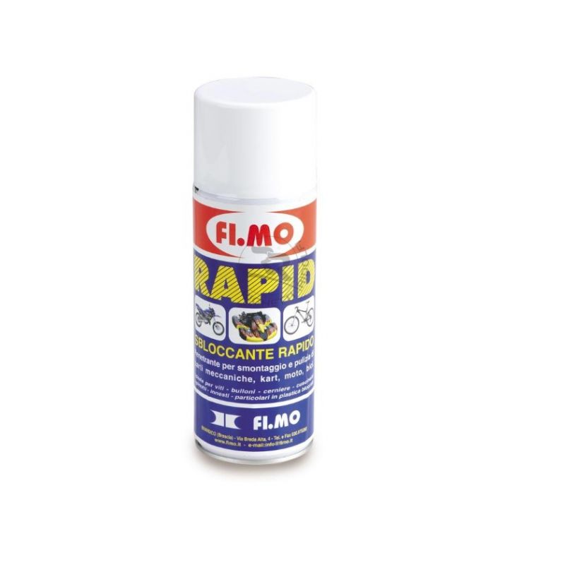 FI Spray. MO "RAPID" saves a lot of time and effort and avoids breakage during disassembly. Due to its high degree of penetration and lubrication, it is suitable for every sports maintenance sector. Indispensable for interventions on the competition fields for its practicality and in the workshop for its precious effectiveness. It penetrates deeply, effectively degreases, eliminates sludge, lubricates and protects. - Packaging: 400ml.