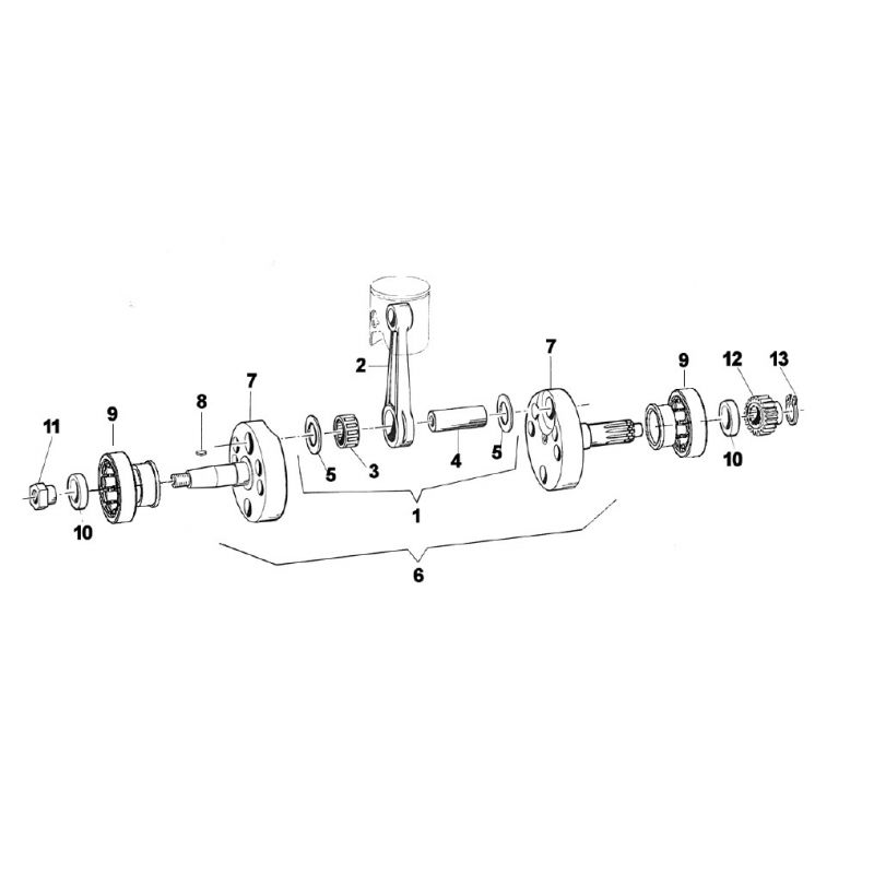 THE COMPLETE CRANKSHAFT INCLUDES: - 01 PAIR OF HALF-SHAFTS 22 N.7 ON THE FIGURE - 01 BARE CONNECTING ROD 22 N.2 ON THE FIGURE - 02 SILVER WASHER 22 N.5 ON THE FIGURE - 01 SILVER CAGE 22 N.3 ON THE FIGURE - 01 AXIS 22X50,4 N.4 ON THE FIGURE
