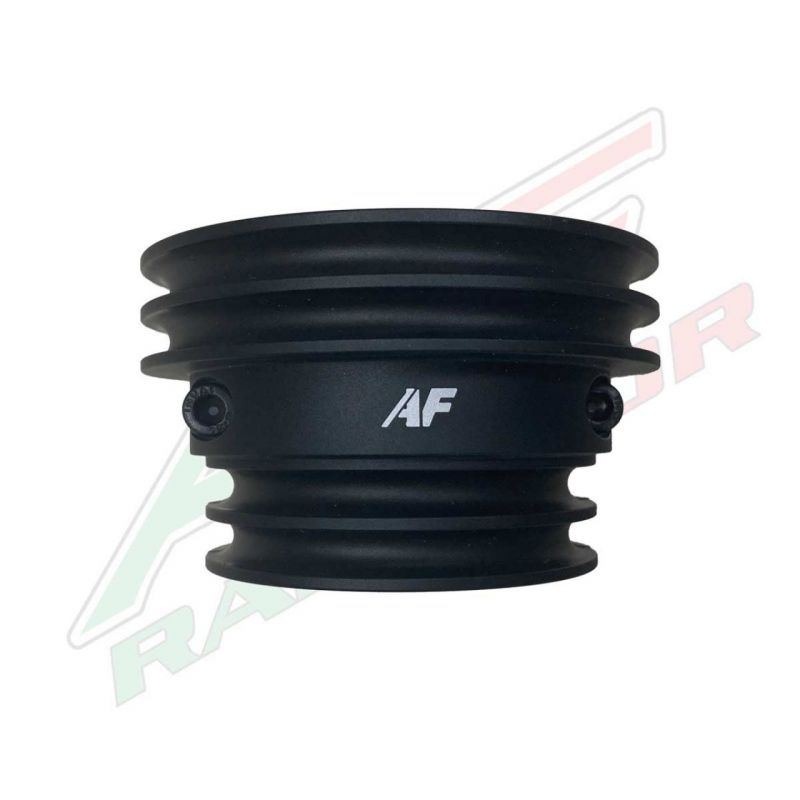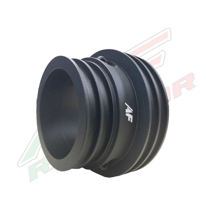 Smooth pulley for go kart radiator water pump, diameter 50 mm. Entirely made of solid anodized aluminium, satin black colour. We are proud to present this new accessory created by AF Radiator which allows the adjustment of the belt for the water pump on 2 different speeds thanks to the 2 ratios present, the first with a diameter of 55 mm and the second 75 mm. Entirely installable and removable without any need to dismantle the rear axle of the kart! Also available in toothed version. Weight, only 220 grams. AF Radiator Performance for Winning Drivers!